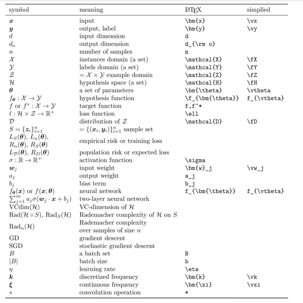 I was struggling in writting Latex for the formula, then found this table is useful (source is here):