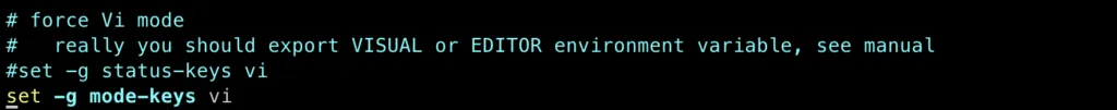 # -- custom variables ----------------------------------------------------------I am a fan of Vi/Vim, must enable Vi mode in “~/.tmux.conf.local”: