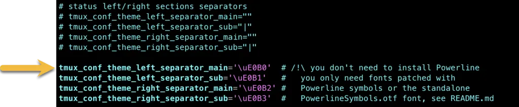 tmux_conf_theme_left_separator_main='\uE0B0'tmux_conf_theme_left_separator_sub='\uE0B1'tmux_conf_theme_right_separator_main='\uE0B2'tmux_conf_theme_right_separator_sub='\uE0B3'