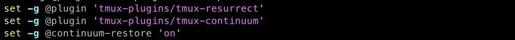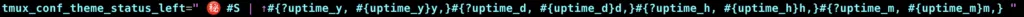 cd ~rm -fr .tmuxgit clone https://github.com/gpakosz/.tmux.gitln -s -f .tmux/.tmux.confcp .tmux/.tmux.conf.local .Append below into .tmux.conf.local before the line “# -- custom variables”: