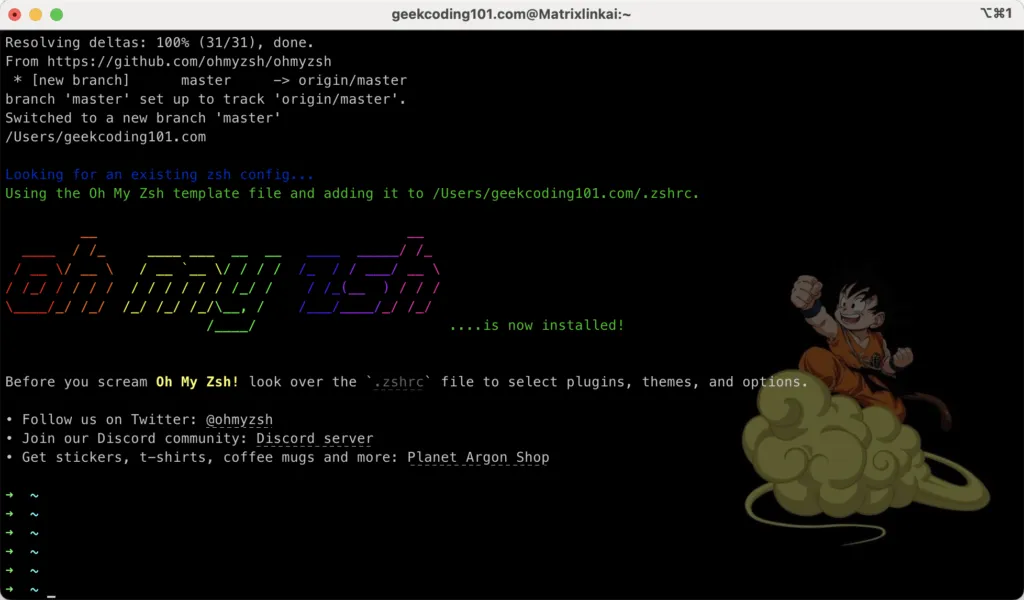 sh -c "$(curl -fsSL https://raw.githubusercontent.com/ohmyzsh/ohmyzsh/master/tools/install.sh)"